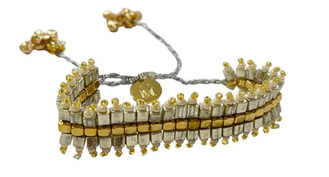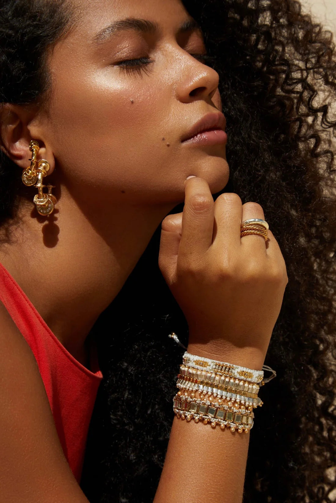 The Bali Bracelet features a handwoven design that skillfully combines various beads, drawing inspiration from the magnificent temples of Indonesia and their deep spiritual significance.
